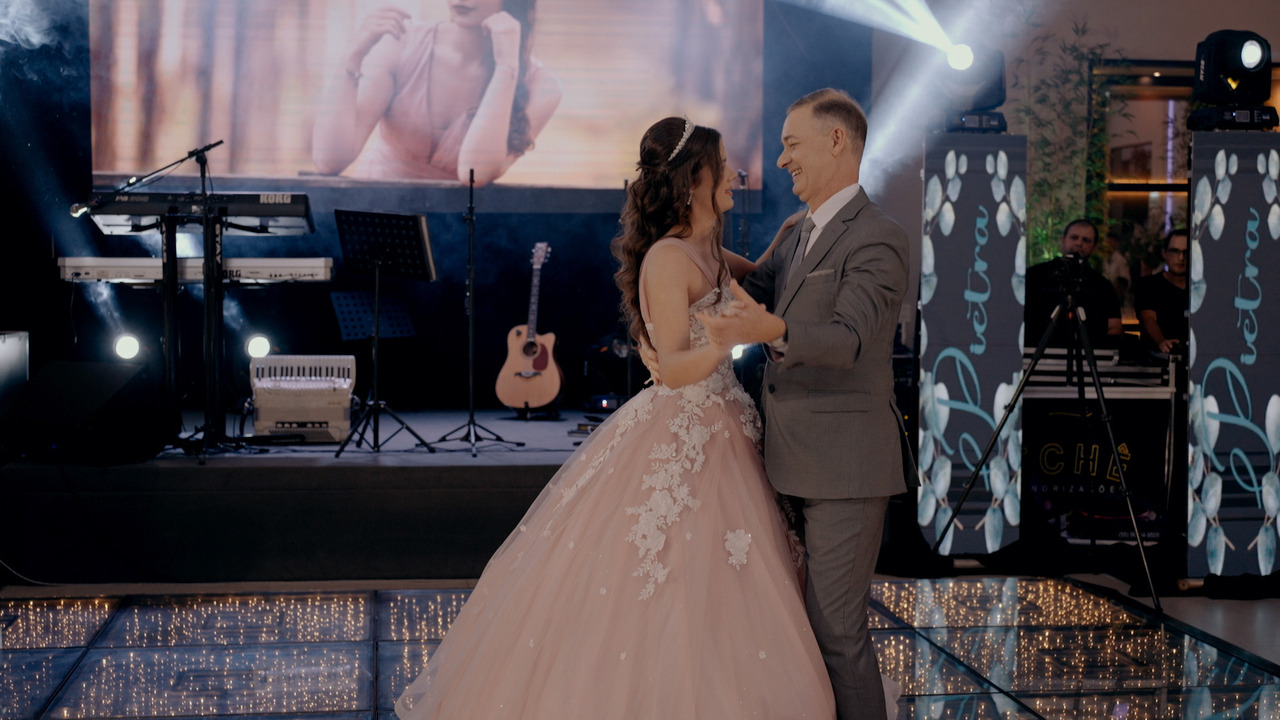 O ápice dessa jornada transbordou no olhar emocionado dos pais e da irmã, Rodaika, que viram naquela entrada triunfal a realização de um ciclo de espera e companheirismo. Ver a Pietra surgir, radiante, foi o encontro da técnica impecável da decoração com a emoção bruta de uma família que vibra por cada conquista dela. Quando ela se uniu ao pai para a valsa, o tempo pareceu suspender a respiração; ali, entre passos e sorrisos, estava a síntese de quinze anos de história, de uma menina que é "fonte de luz" e que agora, diante de todos, dançava a sua própria liberdade. Foi mais que um evento; foi o desabrochar de uma obra de arte chamada Pietra, celebrada com a intensidade que só o amor verdadeiro consegue planejar.