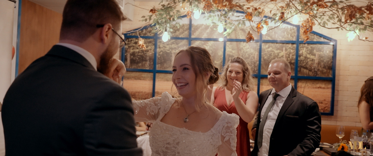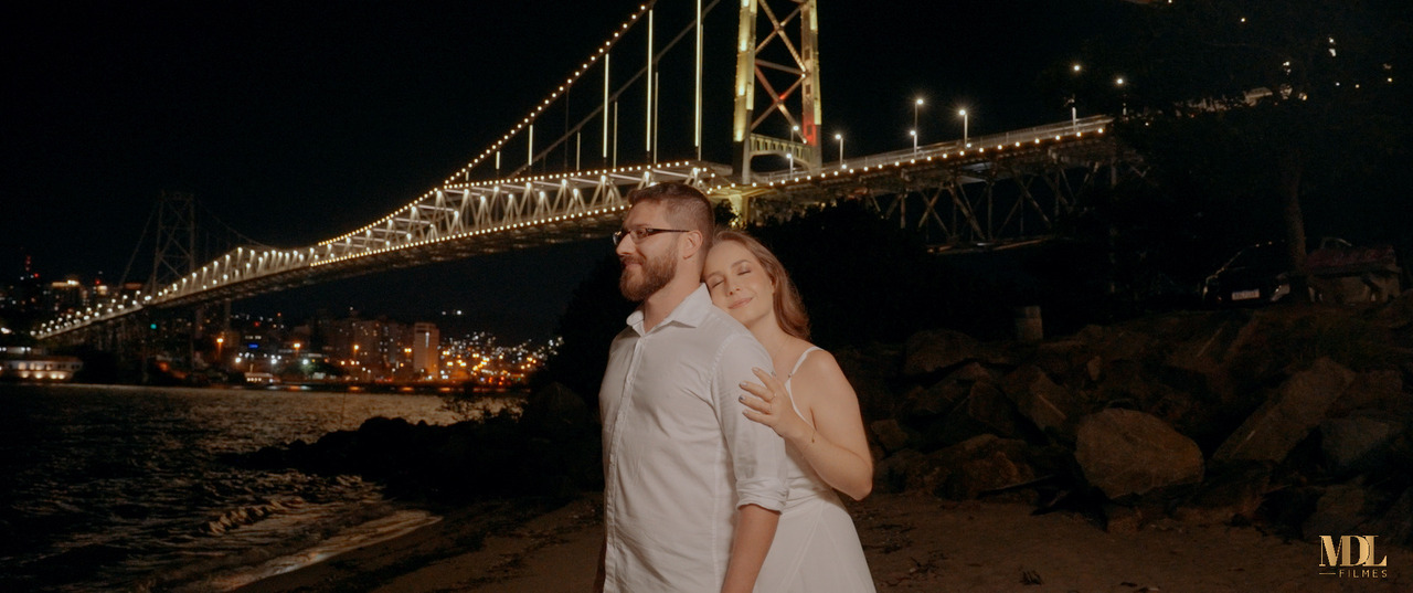 Eu lembro com carinho do nosso primeiro encontro em Florianópolis. Não foi só uma reunião sobre o vídeo do casamento — foi uma conversa de verdade, daquelas que a gente sai com o coração aquecido. Entre um petisco de peixe e camarão, eles me contaram sobre o sonho do casamento, sobre como imaginavam esse dia… e, principalmente, sobre o quanto queriam que a gente contasse a história deles: com emoção, com verdade, com cara de vida real.